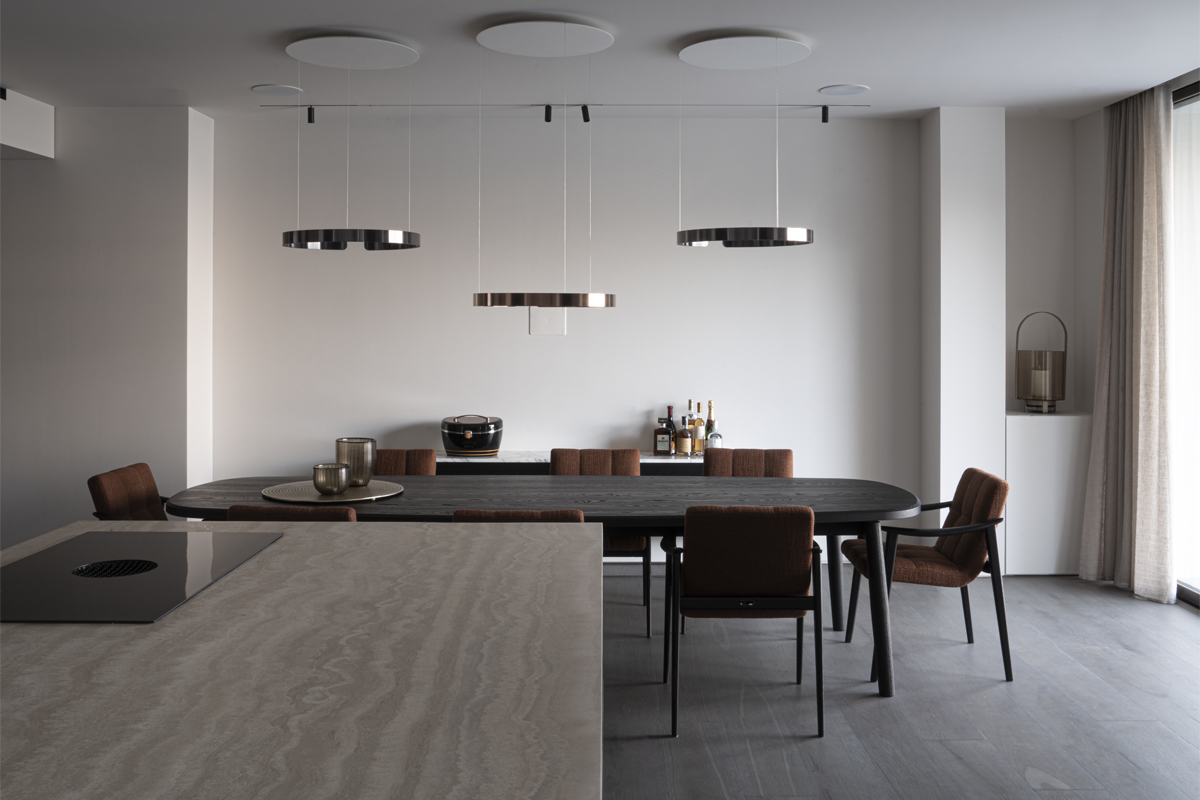 The sun is rising, and a soft light seeps in through the long curtains, quietly spreading into the room. Majestic trees take part in the event, swaying their tops as if rocking themselves before waking. A cool breeze whispers through the mountain peaks and hillsides, while the lake water slides and shimmers. On the shores of Lake Garda stands this monumental villa, overlooking a flourishing and breathtaking landscape. The architectural project is curated by Cabras Architetti Associati, which created a sculptural work paying attention to the harmonious dialogue between the territory, human beings, and nature. Container and content: one projects into the other, recreating volumes, spaces, rhythms, and relationships. Zenucchi Design Code composed and supported this project by offering refined and high-level furniture. It’s a teamwork that makes the difference.