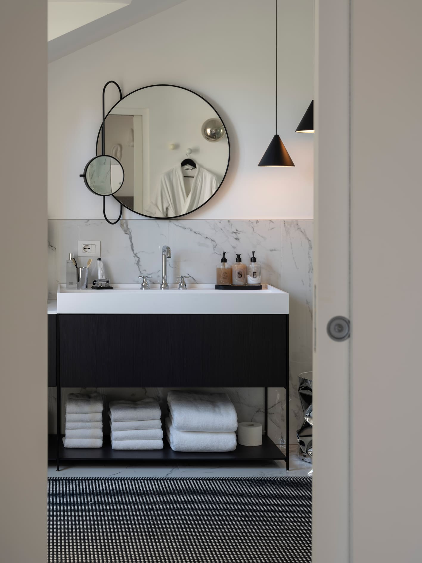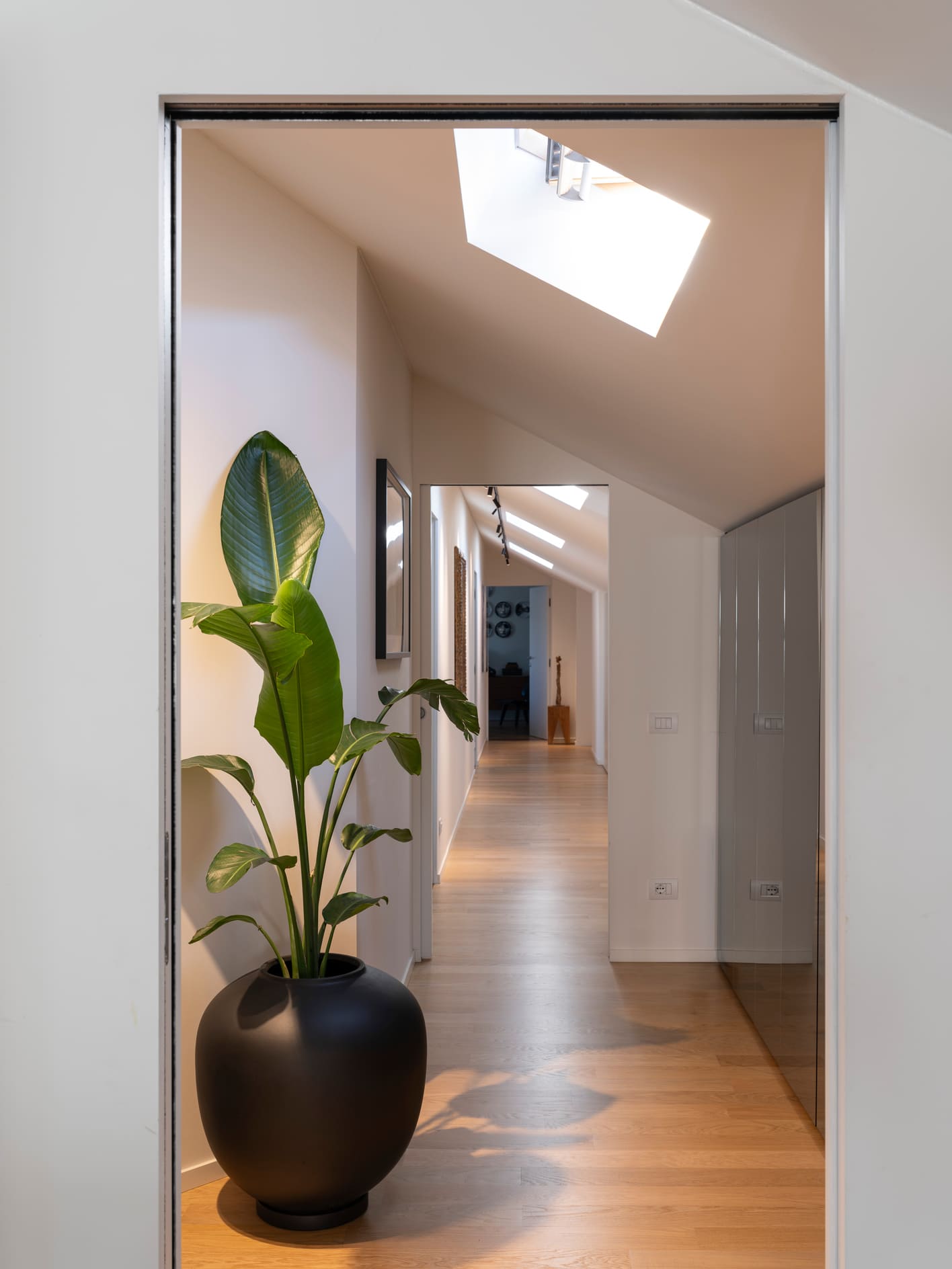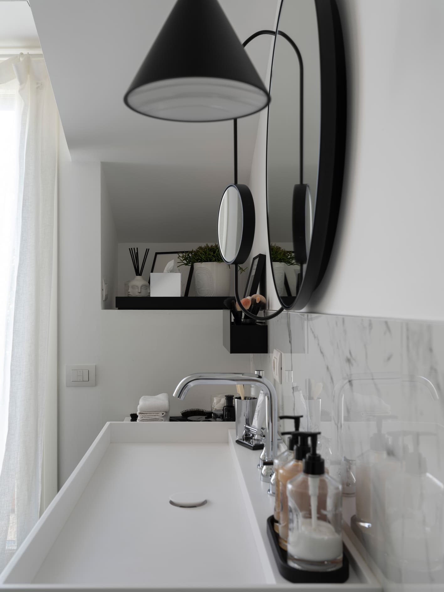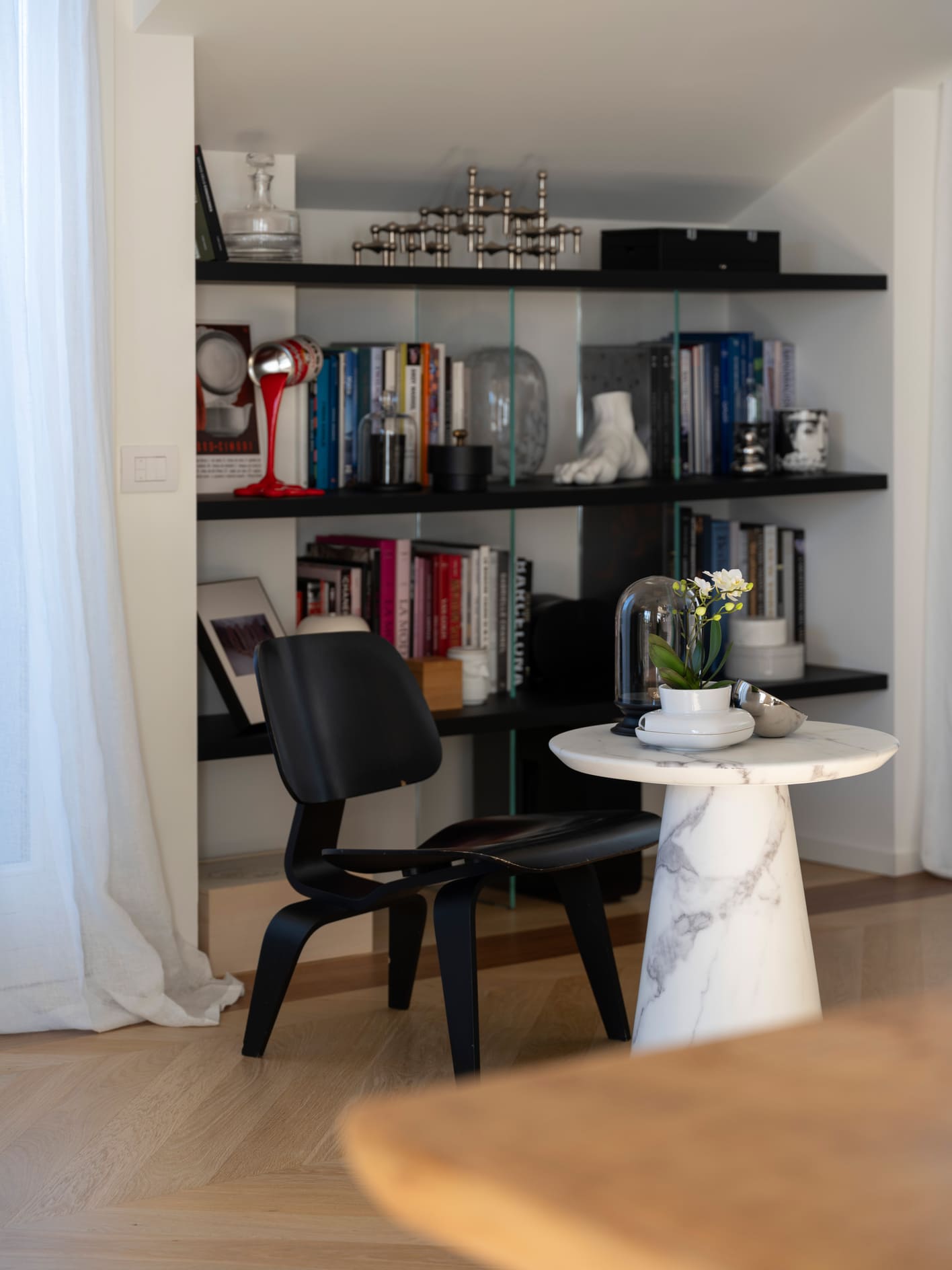 The project stems from a relationship nurtured over time, built on trust and attentive listening, and unfolds as an ongoing dialogue capable of interpreting an evolving lifestyle. The apartment, located in the heart of Bergamo, is set within a renovated building between the lower and upper city, featuring bright views and terraces that extend the living space outdoors. It is a project of completion and reinterpretation that enhances existing spaces, supporting living with freedom, practicality, and quality. Light becomes the guiding principle of the design: both natural and artificial, an invisible structure that connects the spaces and defines their rhythm. A luminous, open home where black and white converse with neutral materials and a curated collection of objects that tell a personal story. The project thrives on carefully measured materials and consistent choices. The color palette remains essential, based on neutral tones, punctuated with a few thoughtfully calibrated accents.