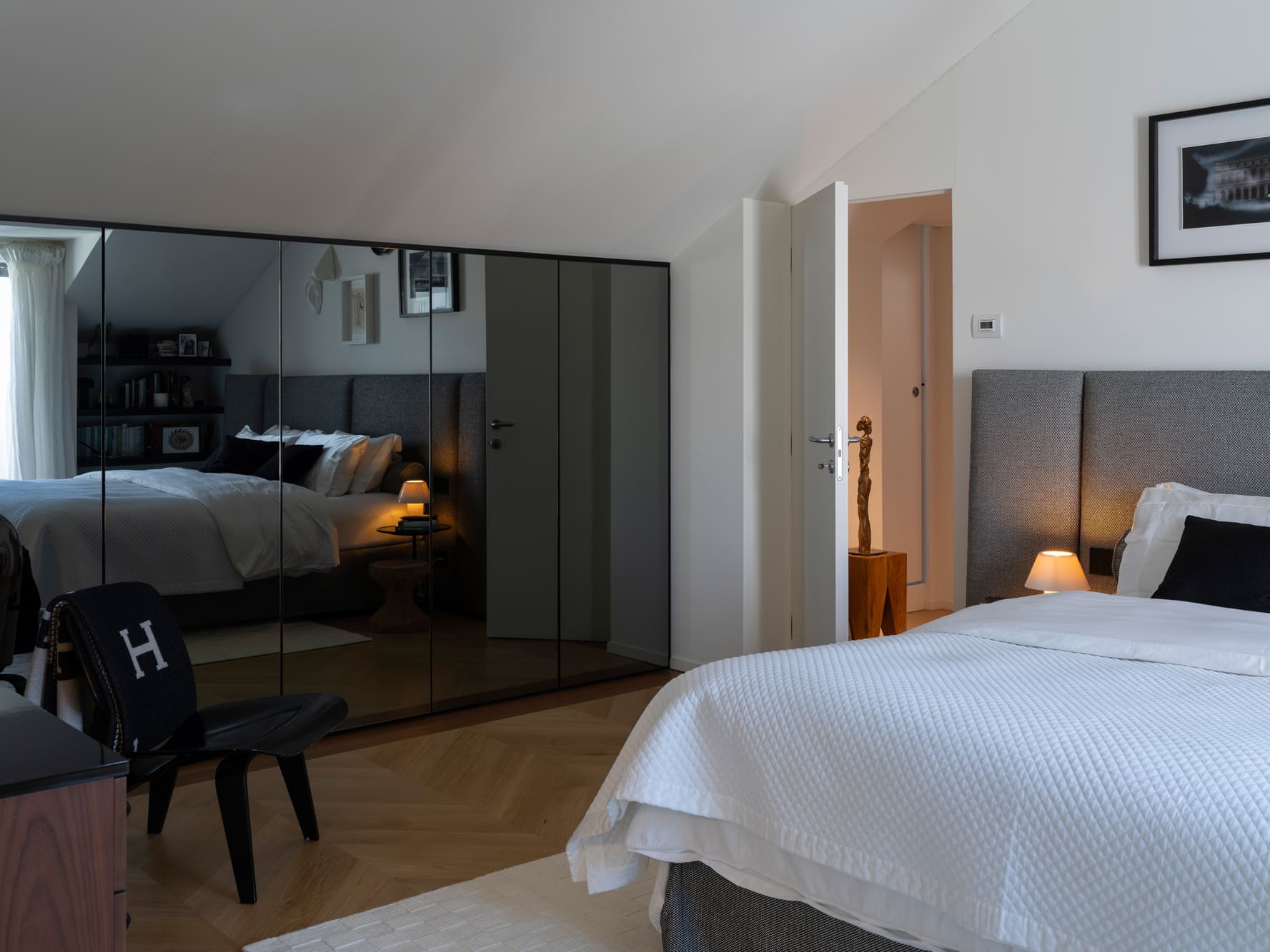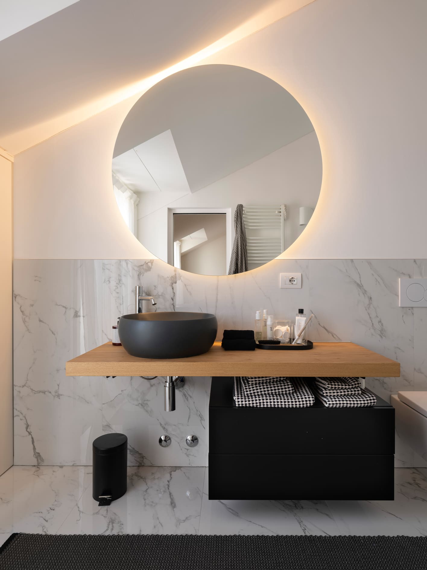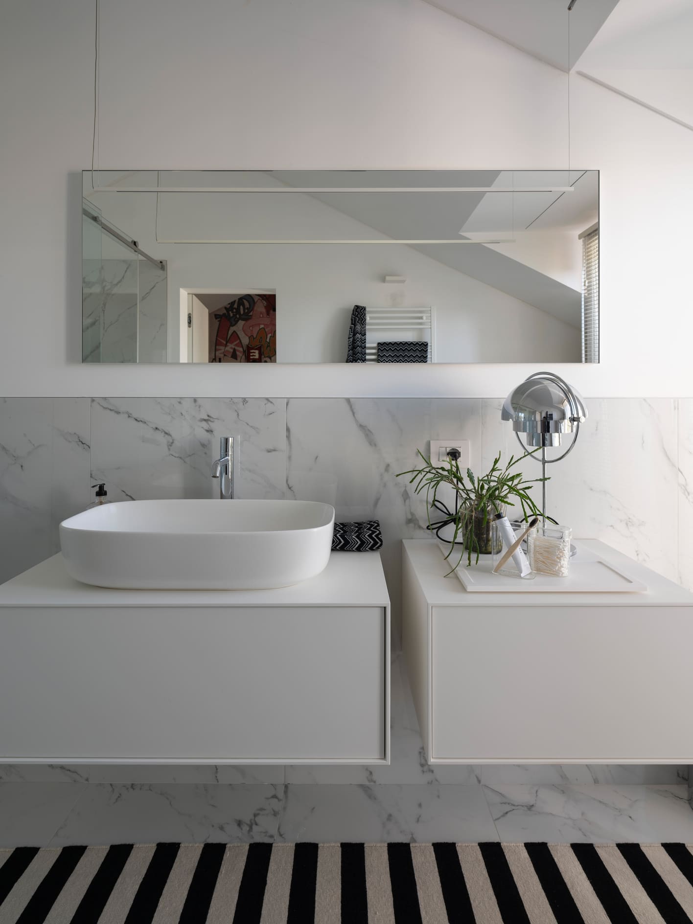 The project stems from a relationship nurtured over time, built on trust and attentive listening, and unfolds as an ongoing dialogue capable of interpreting an evolving lifestyle. The apartment, located in the heart of Bergamo, is set within a renovated building between the lower and upper city, featuring bright views and terraces that extend the living space outdoors. It is a project of completion and reinterpretation that enhances existing spaces, supporting living with freedom, practicality, and quality. Light becomes the guiding principle of the design: both natural and artificial, an invisible structure that connects the spaces and defines their rhythm. A luminous, open home where black and white converse with neutral materials and a curated collection of objects that tell a personal story. The project thrives on carefully measured materials and consistent choices. The color palette remains essential, based on neutral tones, punctuated with a few thoughtfully calibrated accents.