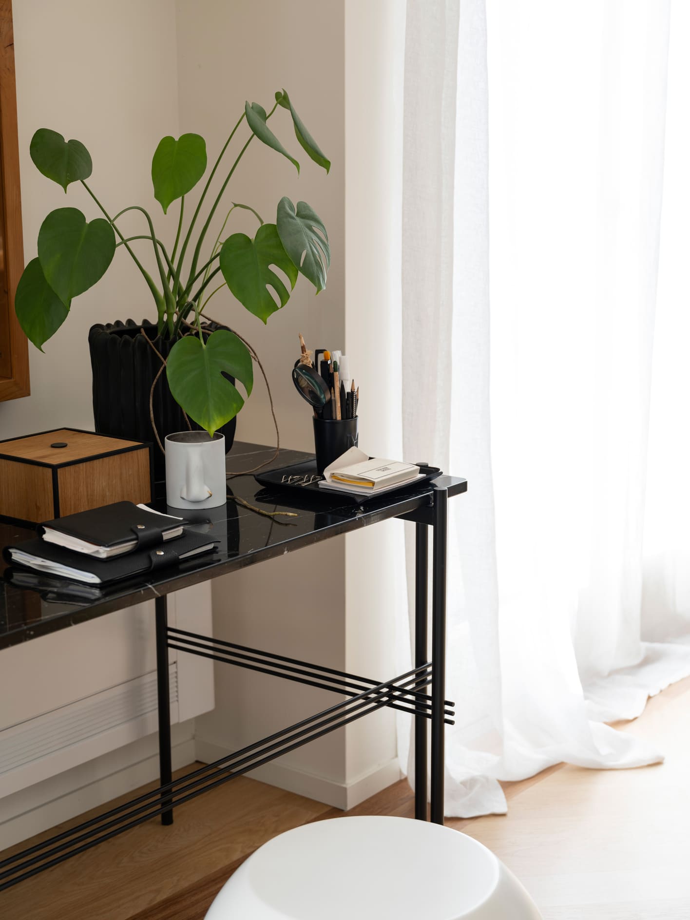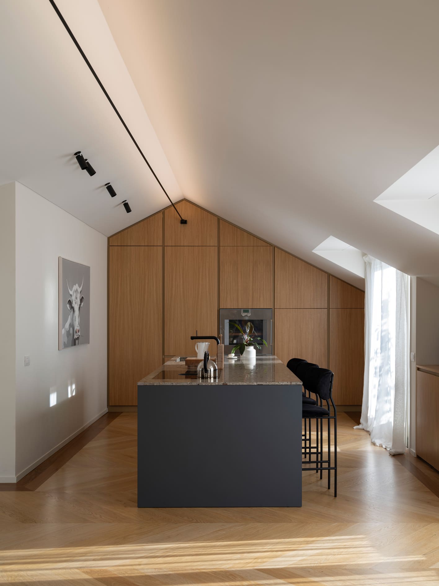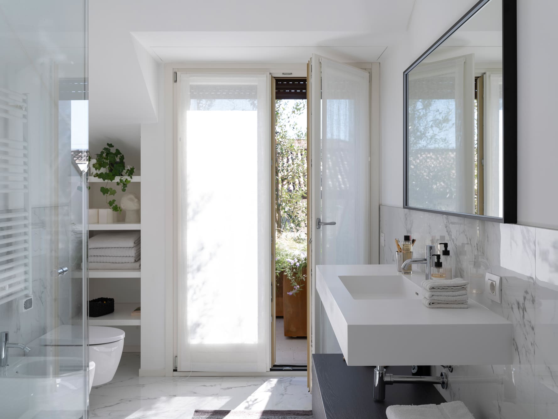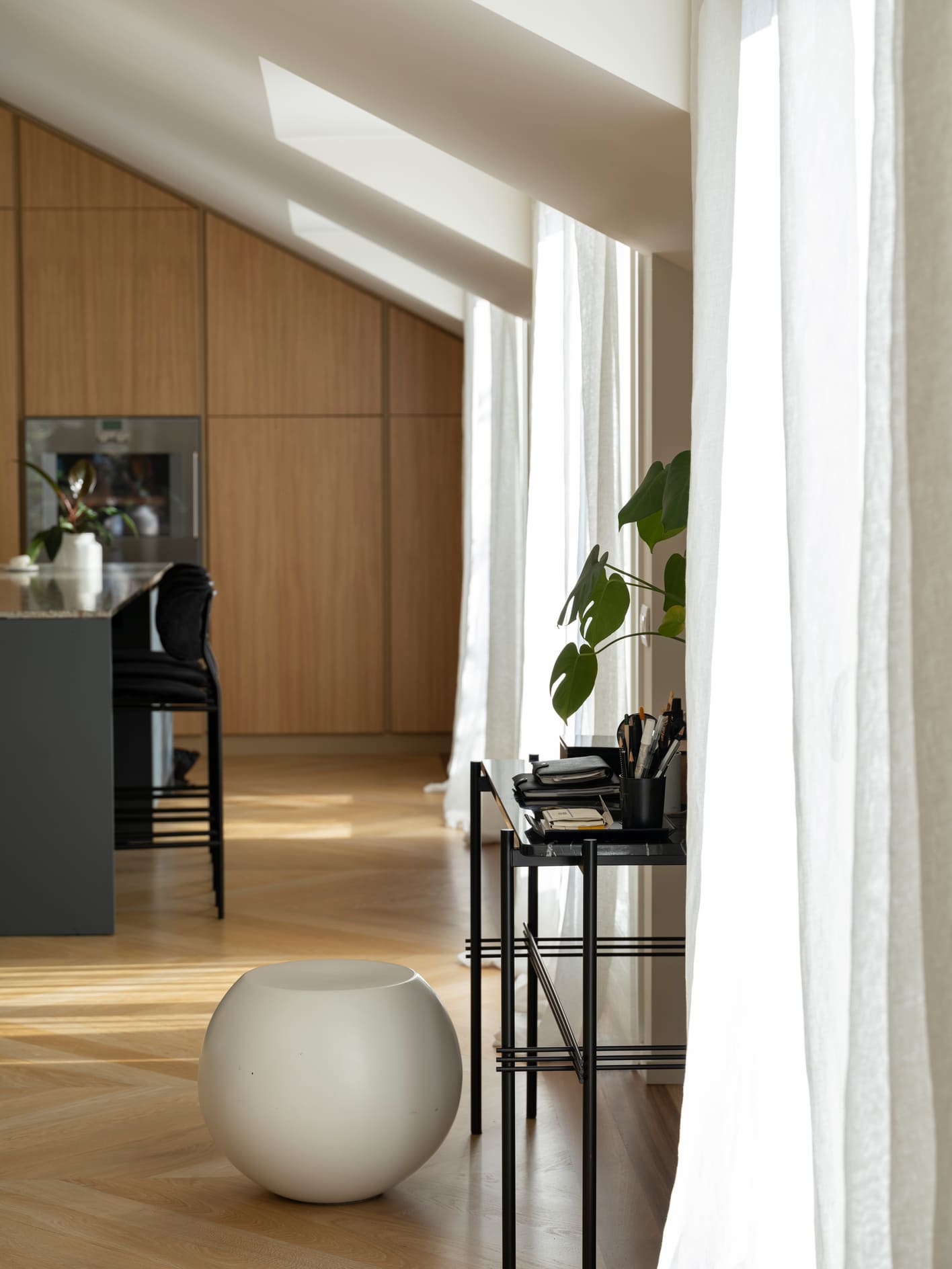 The project stems from a relationship nurtured over time, built on trust and attentive listening, and unfolds as an ongoing dialogue capable of interpreting an evolving lifestyle. The apartment, located in the heart of Bergamo, is set within a renovated building between the lower and upper city, featuring bright views and terraces that extend the living space outdoors. It is a project of completion and reinterpretation that enhances existing spaces, supporting living with freedom, practicality, and quality. Light becomes the guiding principle of the design: both natural and artificial, an invisible structure that connects the spaces and defines their rhythm. A luminous, open home where black and white converse with neutral materials and a curated collection of objects that tell a personal story. The project thrives on carefully measured materials and consistent choices. The color palette remains essential, based on neutral tones, punctuated with a few thoughtfully calibrated accents.