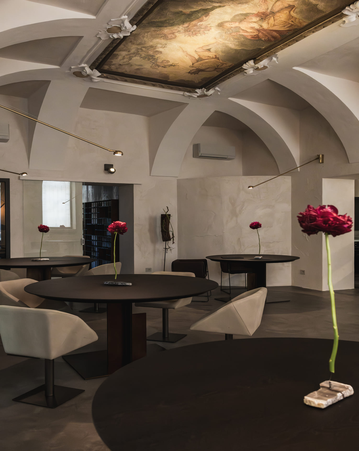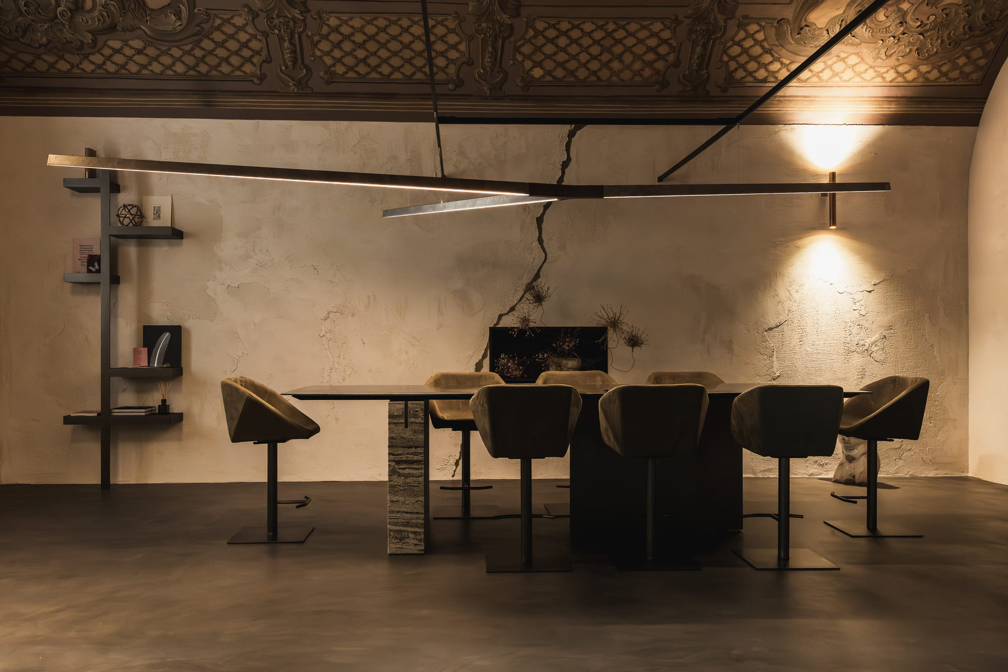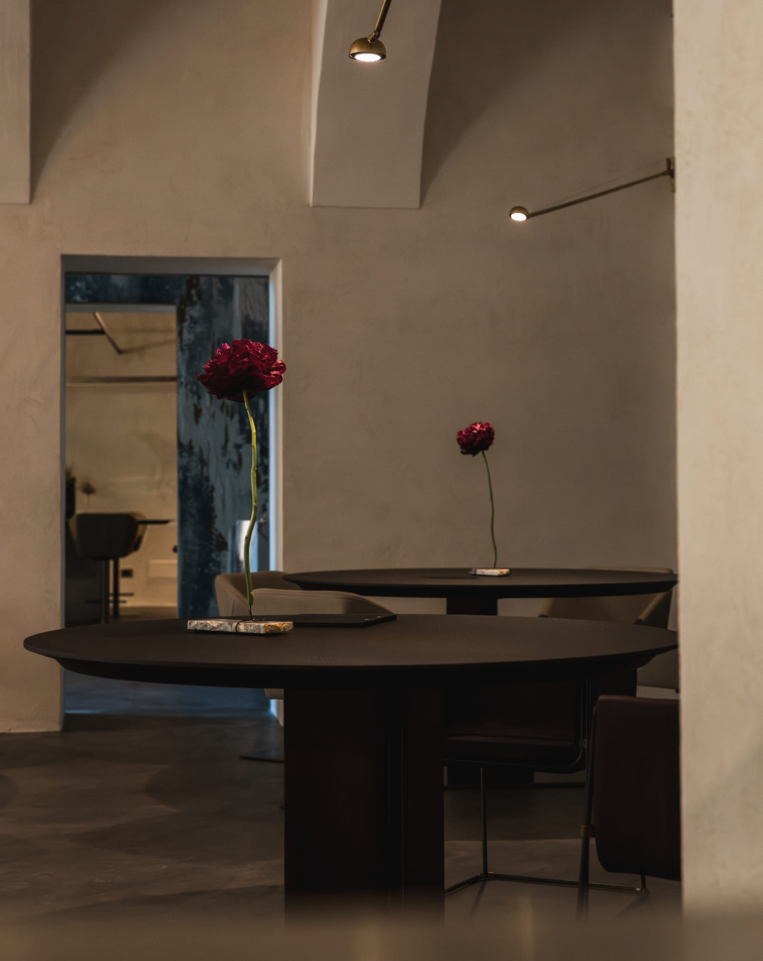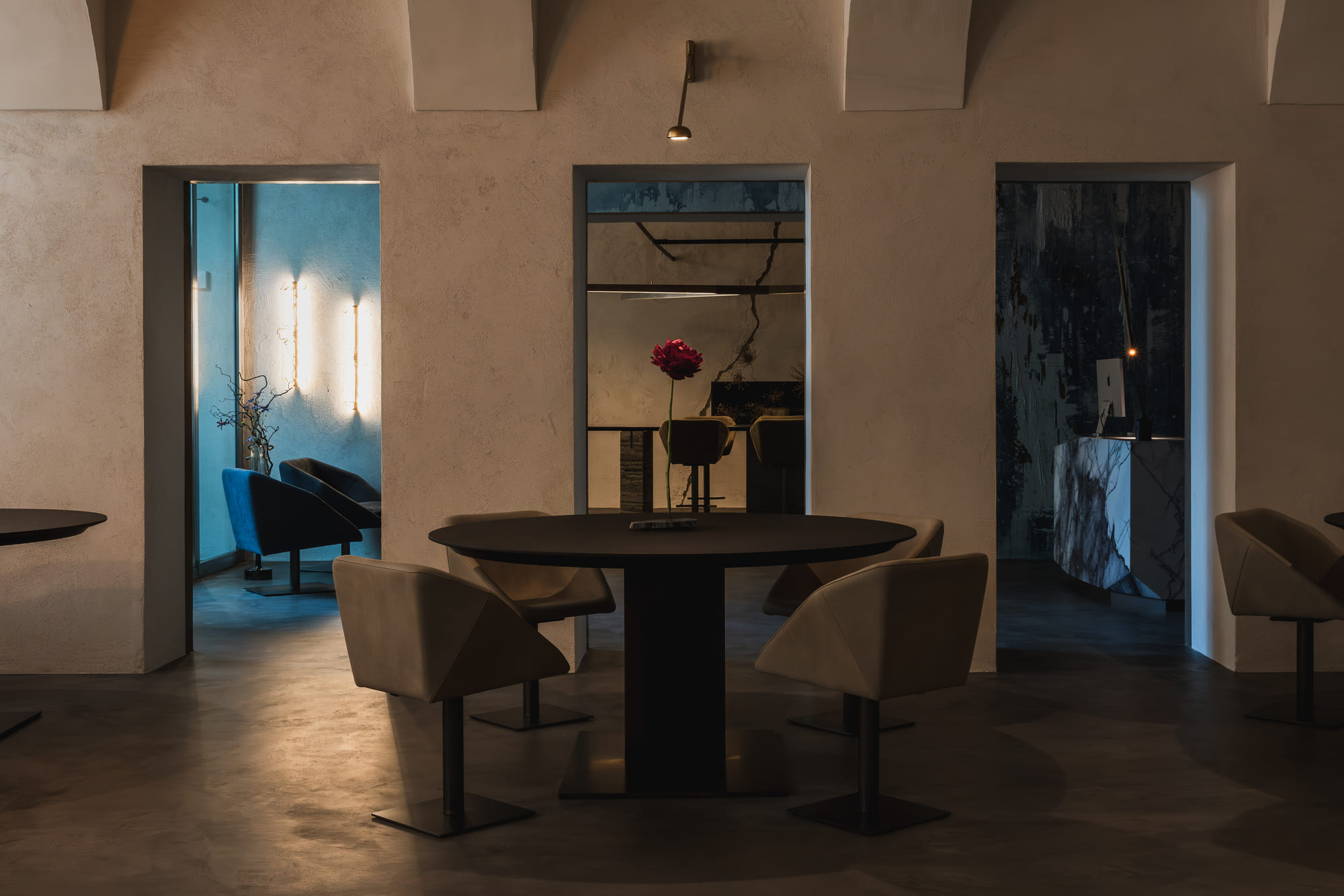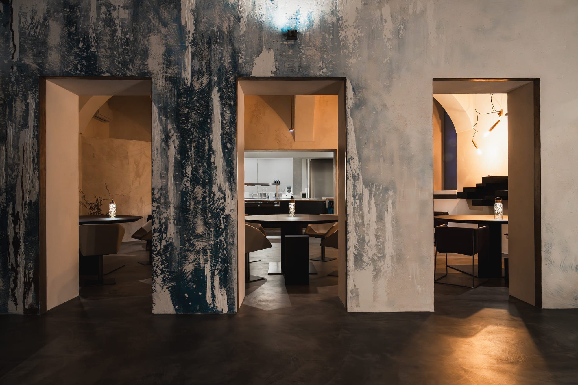 Rebis was born from the encounter between a precise gastronomic vision and the desire to shape it within a space capable of expressing it. Rebis is an alchemy of taste and vision: a subtle balance between opposites in transformation, between matter and experience. The choice of a historic building in the heart of Desenzano del Garda introduces structural and emotional constraints that become an integral part of the project, requiring respect, sensitivity, and awareness, without compromise. Zenucchi Design Code accompanies this narrative by translating the identity of the place into an intense, intimate environment, where light and shadow, fullness and void, rigor and sensuality coexist in constant dialogue. The entrance acts as a threshold, a hall that slows time and prepares guests for the experience, from which two complementary souls unfold: one more intimate and measured, and the other convivial, both connected to an open kitchen that reveals the gesture and the story behind it.