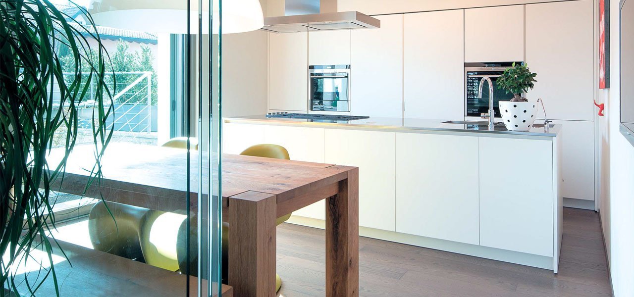 La capacità dello staff di progettisti di Zenucchi Design Code, inoltre, ha sapientemente coniugato la scelta dei modelli Kiton per le colonne e Alea per le basi, uniformando l’immagine con il laccato opaco bianco della finitura. Il risultato di questo gioco di colori e di forme, costruisce ed esalta l’intensità della luce degli ambienti che si presentano raffinati, moderni, ma rilassanti. Una sensazione piacevole che si ripresenta, come un eco, nelle altre stanze della casa. I corridoi, lunghi e stretti, delimitati dalle pareti bianche, s’interrompono qua e là con i tagli verticali in vetro fumè, delle porte di Rimadesio; mentre le porte di Lualdi, raso muro, favoriscono la continuità visiva dello spazio. Attraverso di esse si scorgono le stanze vicine. La posa a correre dei listoni del pavimento in legno, ci conduce in una stanza da bagno nella quale primeggia il rivestimento della doccia e il piano in marmo marron corteccia. Nell’altro bagno, invece, è il calore del mobile abbinato alle rubinetterie serie Liquid, di Boffi, a dare la giusta continuità alla lama di luce che pervade la casa. What do you think? Esclama una voce bianca scritta sul fondo rosso di un quadro appeso in cucina, come a volerci interrogare sulle emozioni vissute. Raffinatezza, tranquillità, piacevolezza degli ambienti! Questi sono gli aggettivi che descrivono l’abitare questi luoghi. La giustapposizione degli arredi, la scelta dei colori, valorizzati dai fasci di luce che inondano gli ambienti, hanno determinato la creazione di uno scenario unico, estremamente raffinato, nel quale la luce gioca un ruolo fondamentale. È difficile staccarsi da questa sensazione di benessere, chiudere la porta alle nostre spalle, e ritornare nel caos della città.