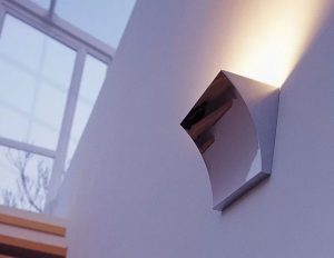 Lampada da parete a luce diretta/indiretta. Corpo in lega di zama pressofusa. Progettata da Rodolfo Dordoni.
