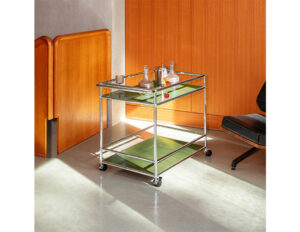 Il carrello di servizio USM Haller è un complemento d’arredo che unisce stile e praticità. Perfetto per servire bibite e bicchieri, può anche ospitare eleganti soprammobili o freschi fiori, aggiungendo un tocco di classe a ogni ambiente. La sua forma lineare e senza tempo lo rende ideale per adattarsi a qualsiasi stile di arredamento, dal moderno al più tradizionale. Dotato di impugnatura ergonomica e ruote, questo carrello è facile da spostare e versatile.