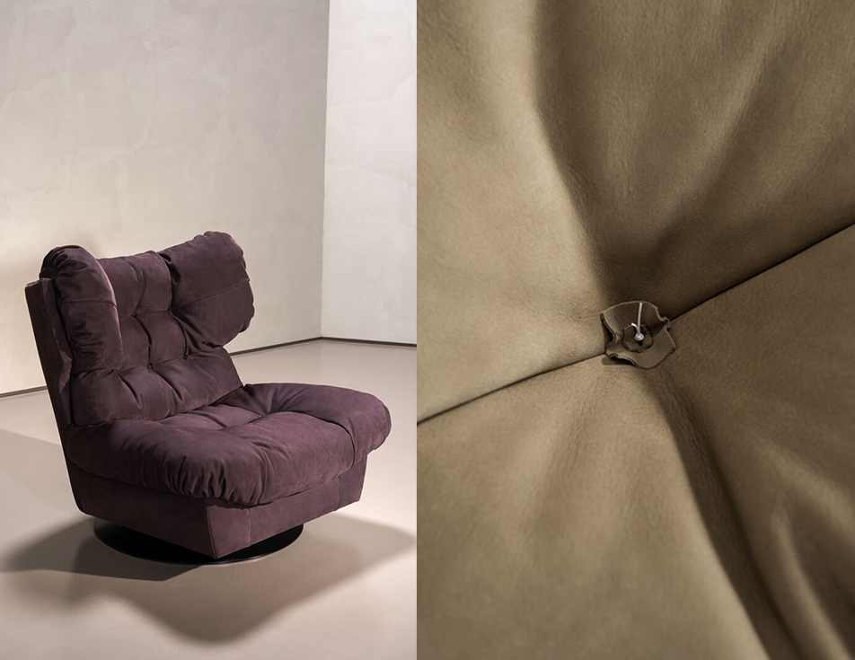 Design accogliente e contenuto nelle dimensioni. Grazie alla base girevole, garantisce un comfort a 360 gradi.